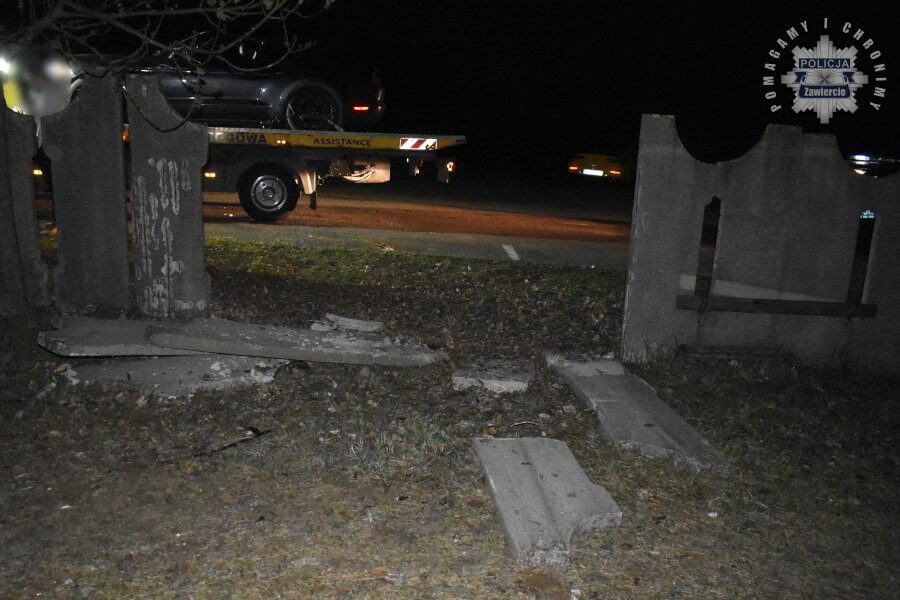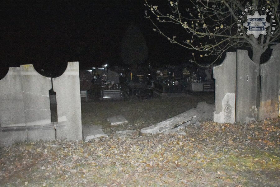 Około północy policjanci z drogówki otrzymali zgłoszenie o kolizji na parkingu przycmentarnym przy ulicy Przyjaźni. Na miejscu zastali uszkodzony pojazd i… zniszczone ogrodzenie cmentarza. Szybko okazało się, że za kierownicą forda mustanga siedział 17-latek, który bez prawa jazdy i pod wpływem alkoholu postanowił „sprawdzić się” jako kierowca.